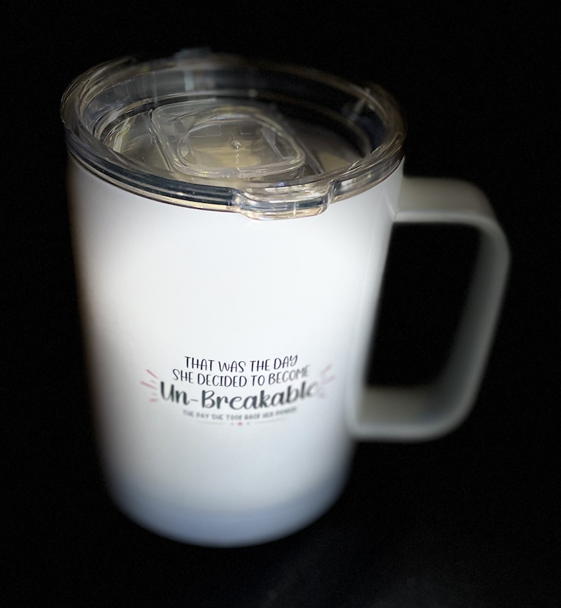 Stay warm and energized with a warm brew and inspiration from the Un-Breakable 2024 Conference in this insulated mug.